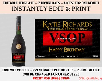 Personalized Cognac Label - Ensight Design Cognac Label Personalized PNG/PDF/DOCX -FINAL PRODUCT WILL BE EMAILED IN 6-12 HOURS. Please leave the information for your label in the NOTES section at checkout:Sample Info: 1. Age2. Year3. Name4. Occassion5. City, State6. Bottle Size in ml (750ml, 375ml, 187ml, 50ml) Email your questions or information to info@ensigh