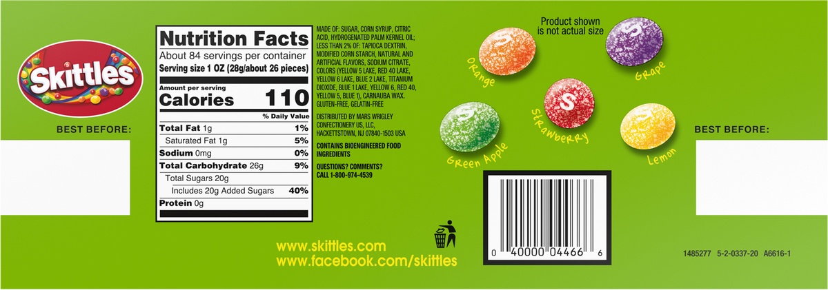 Sour skittles nutrition label