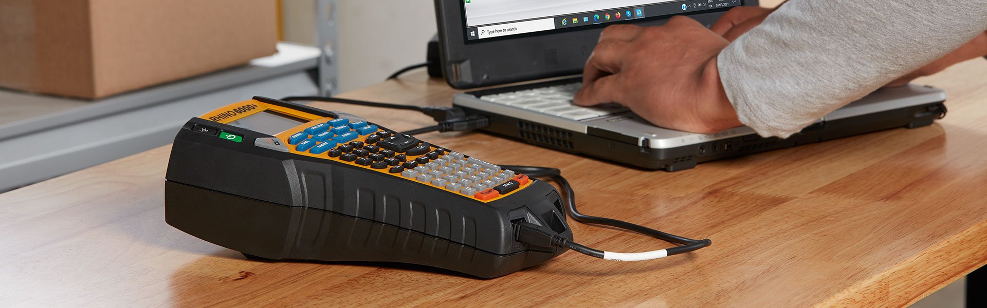 DYMO Rhino 6000 Industrial Label Maker Hard Case Kit 2124721 S0771940 ... Connect it to your PC, and use Rhino Connect™ software to create labels on your computer, and download them to your labeler for even faster labeling on site. Rhino™ Industrial 6000 Label Maker. Connects to PC via USB cable: Use RHINO CONNECT software to create labels on your PC and download them tothe label printer for printing on site.