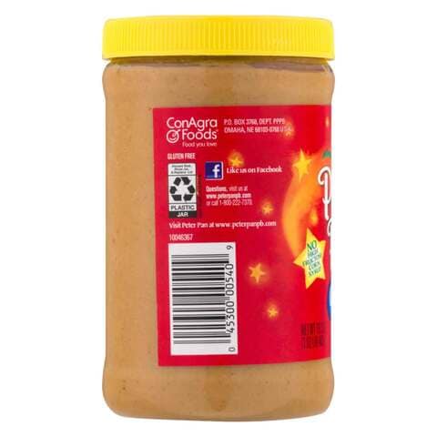 Peter Pan Creamy Original Peanut Butter: Product Information This gluten-free peanut butter has no high-fructose corn syrup and four simple ingredients. Spread it, scoop it, dip it or bake it! Available Sizes: 16.3 oz. 28 oz. 40 oz. 56 oz. 96 oz. Buy Now Nutritional Information Gluten Free No Artificial Colors No Artificial Flavors No Preservatives Kosher (OU) 8g protein (6% DV) per serving You May Also Like