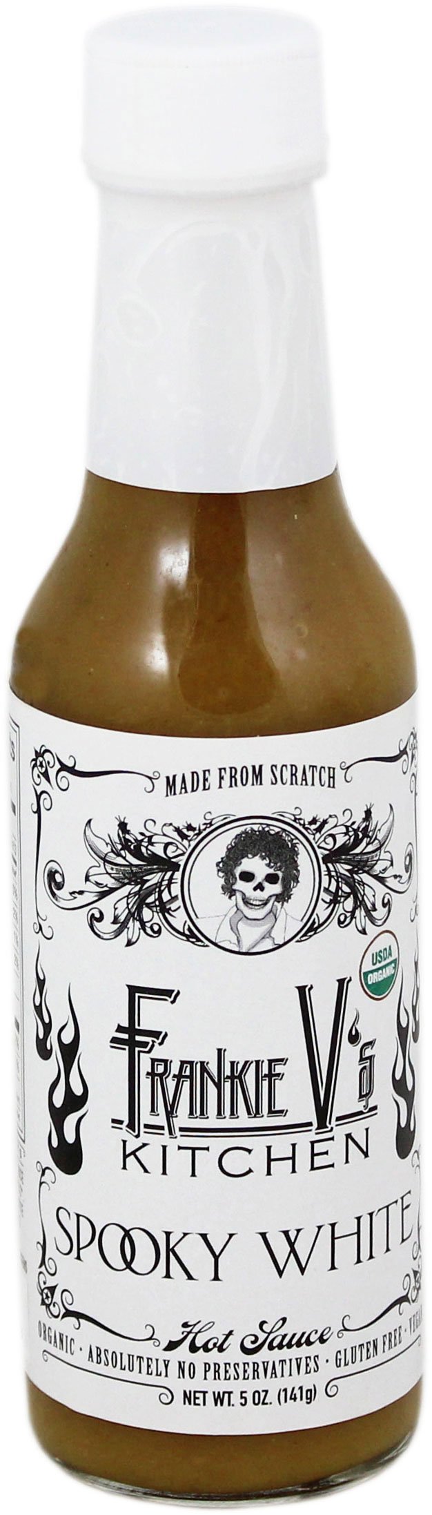 Frankie V's Spooky White Hot Sauce 6.7 oz. - amazon.com It is definitely a different tasting sauce (which is not necessarily a bad thing) so if you are looking for something off the beaten path, this may be a good one for you. You can taste the hints of mustard and ginger in there. The one thing I did not like was that the vinegar taste was overpowering for my taste. Frankie V's Kitchen Salsas review - HotSauceDaily Frankie V's side label Ingredients: tomatillos, pear, pineapple, mango, onion, agave nectar, garlic, serrano pepper, cilantro, lime juice, coconut oil. Overall Rating: - Frankie V & The Serranos could be just a bit hotter to get our favorite rating of 5. But for flavor and quality it's up there! Frankie V & The Habaneros